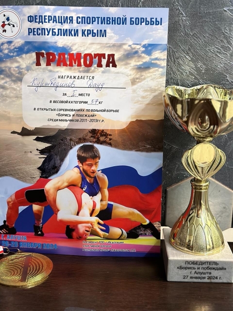 Борись и побеждай 27 января в г.Алушта прошли открытые соревнования по вольной борьбе "Борись и побеждай". Поздравляем нашего учащегося 6-Г класса Куртбединова Дауда с победой в весовой категории 57 кг.